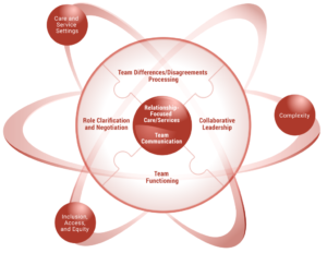 Nous utilisons notamment le référentiel du CIHC (Canadian Interprofessional Health Collaborative), qui définit les compétences essentielles pour un travail interprofessionnel efficace. Ces 6 compétences sont :